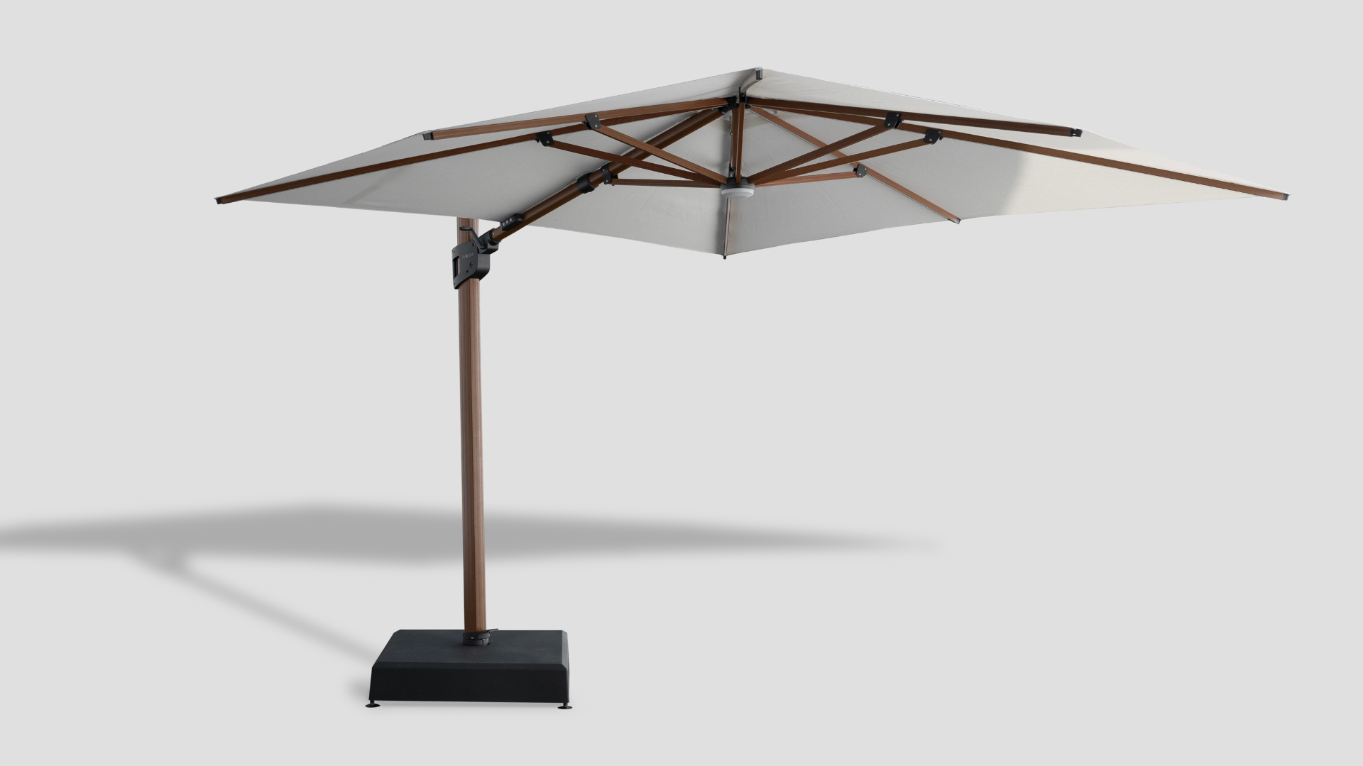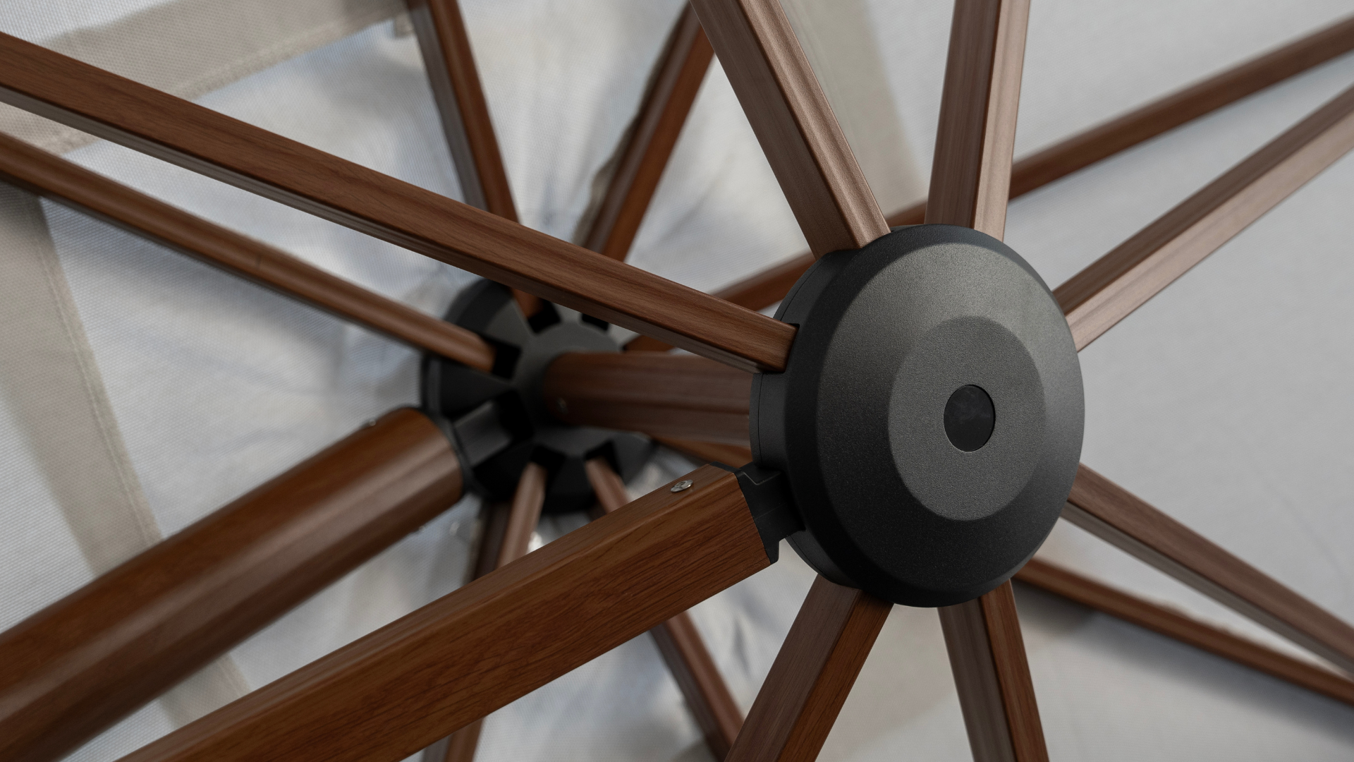 This push-up umbrella is perfect for compact spaces like balconies or roadside cafés, featuring an effortless reverse design that locks in place without extra mechanisms. Its aluminum frame boasts a wooden optic finish, offering the warmth of natural wood without its upkeep. The sturdy 38mm single-piece pole withstands winds up to Grade 8, while the soft-grip handle ensures comfort. All screws and accessories are SS316 stainless steel, making it exceptionally durable—even in beachfront environments.